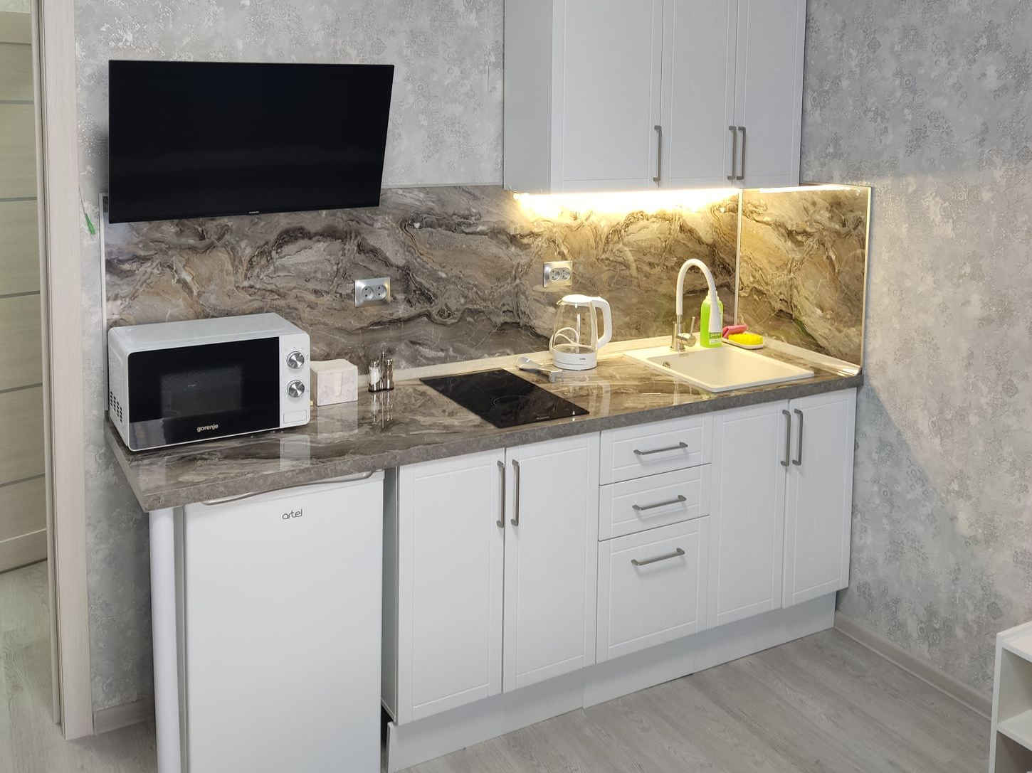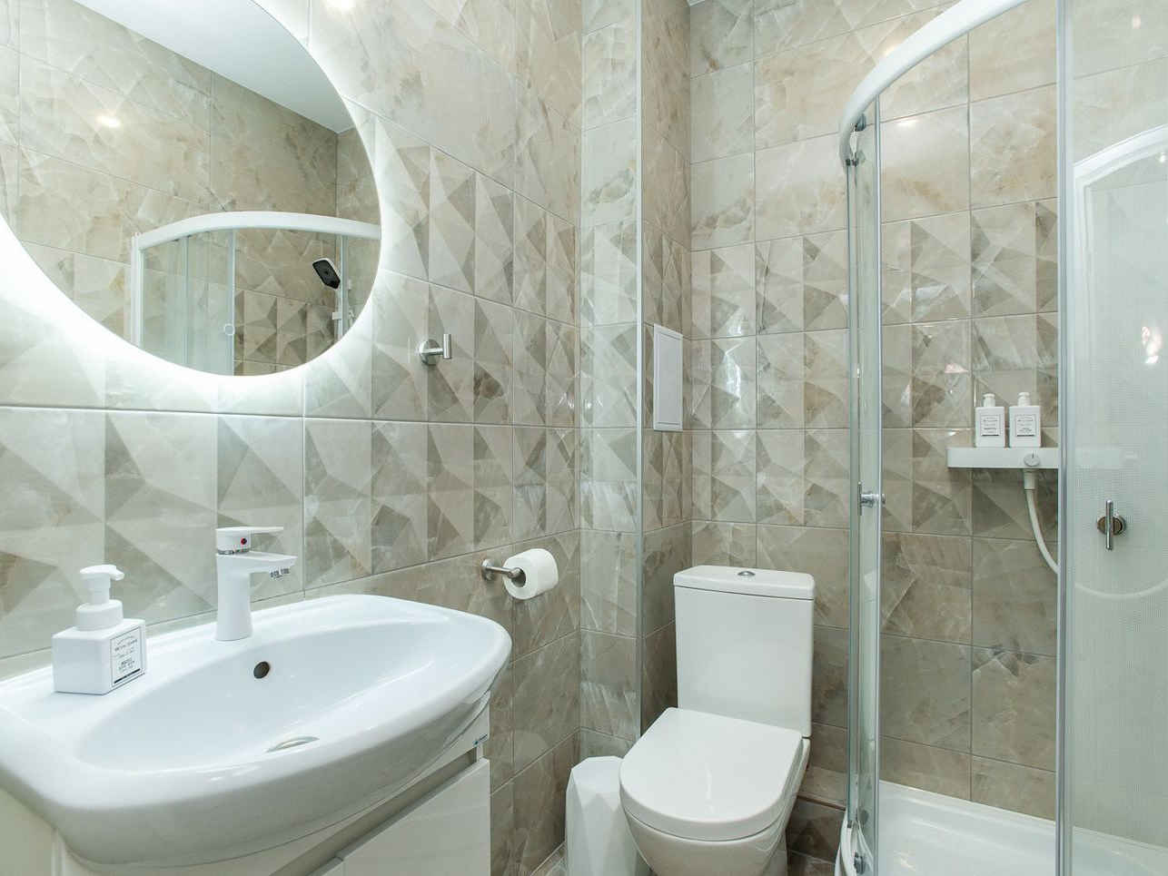 Во всех квартирах имеется полноценная кухонная зона и туалет с душевой кабинкой.