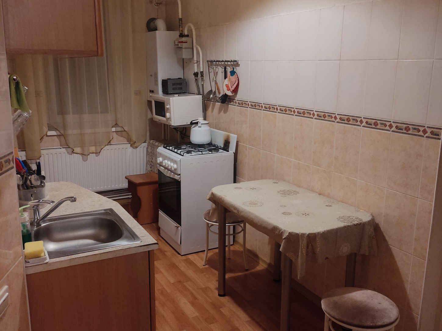Вместимость до 4 человек (двуспальная кровать, 2 раскладных дивана). 1 этаж. Ремонт простой, без изысков, что компенсируется невысокой ценой.